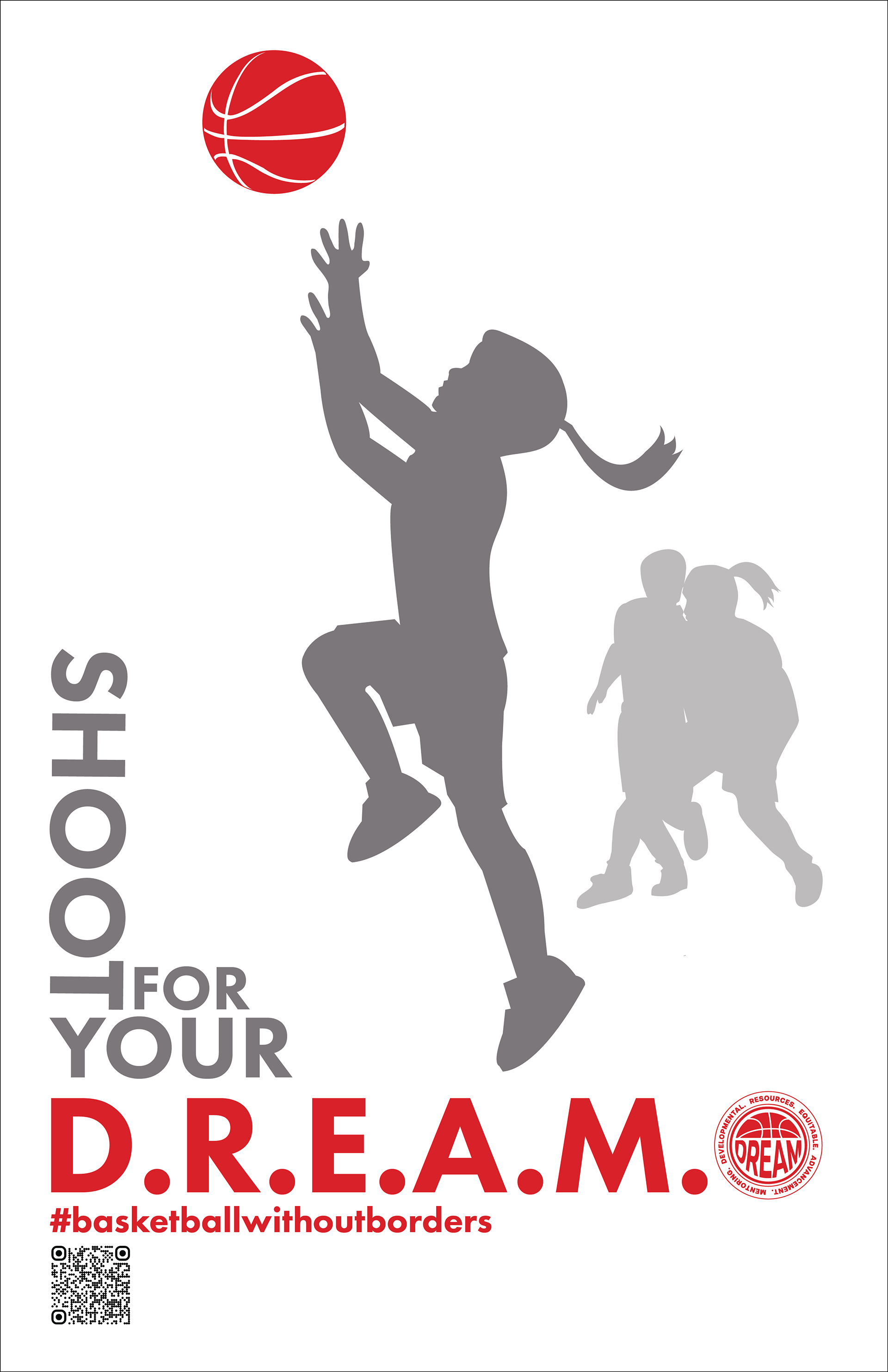 The goal of this project was to create a poster promoting the organization D.R.E.A.M., which aims to make basketball training, general youth development and mentoring more accessible to various communities. The target audience of the poster is potential clients of the program, such as parents and kids, as well as donors. One of the goals of D.R.E.A.M. is to make basketball more accessible and inspiring for young girls, as inspired by the director's two young daughters.